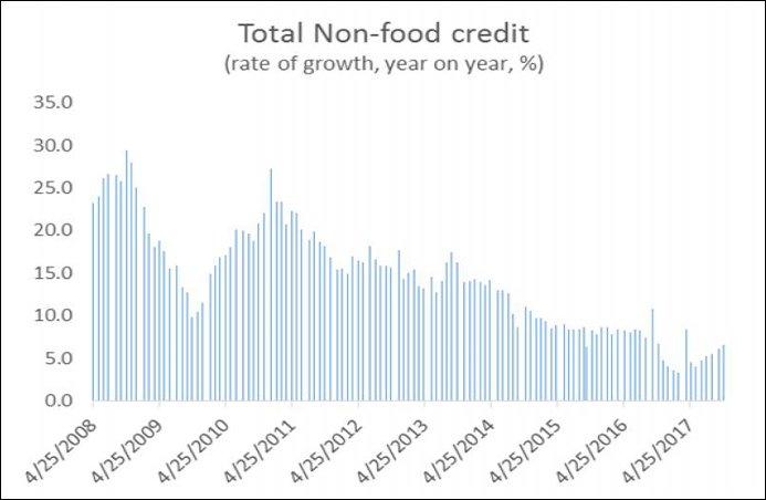 Chart 1: Bank credit slowed sharply from 2014